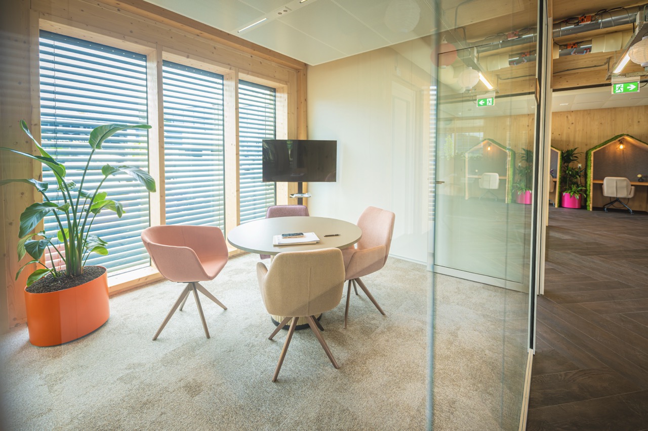 Deze vergaderruimte ligt op Campus Hambaken Timber, onze houten locatie in Den Bosch. Benieuwd naar de omgeving of bereikbaarheid? Bekijk dan ook de locatiepagina.