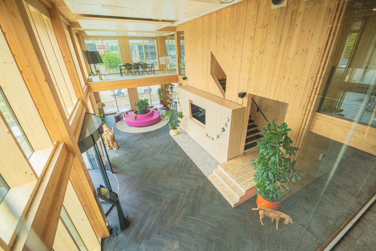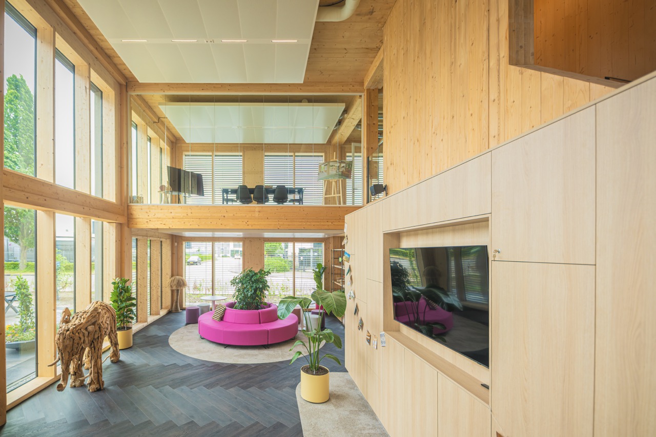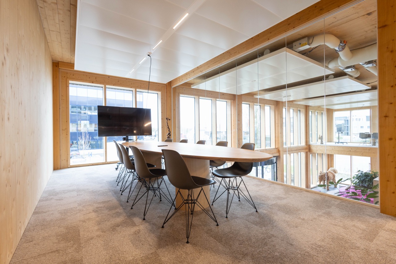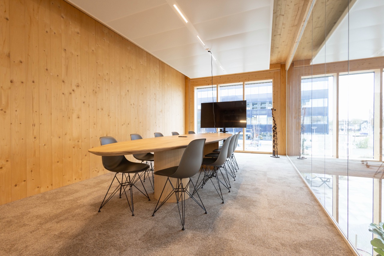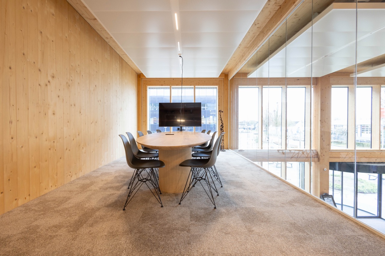 Deze vergaderruimte ligt op Campus Hambaken Timber, onze houten locatie in Den Bosch. Benieuwd naar de omgeving of bereikbaarheid? Bekijk dan ook de locatiepagina.
